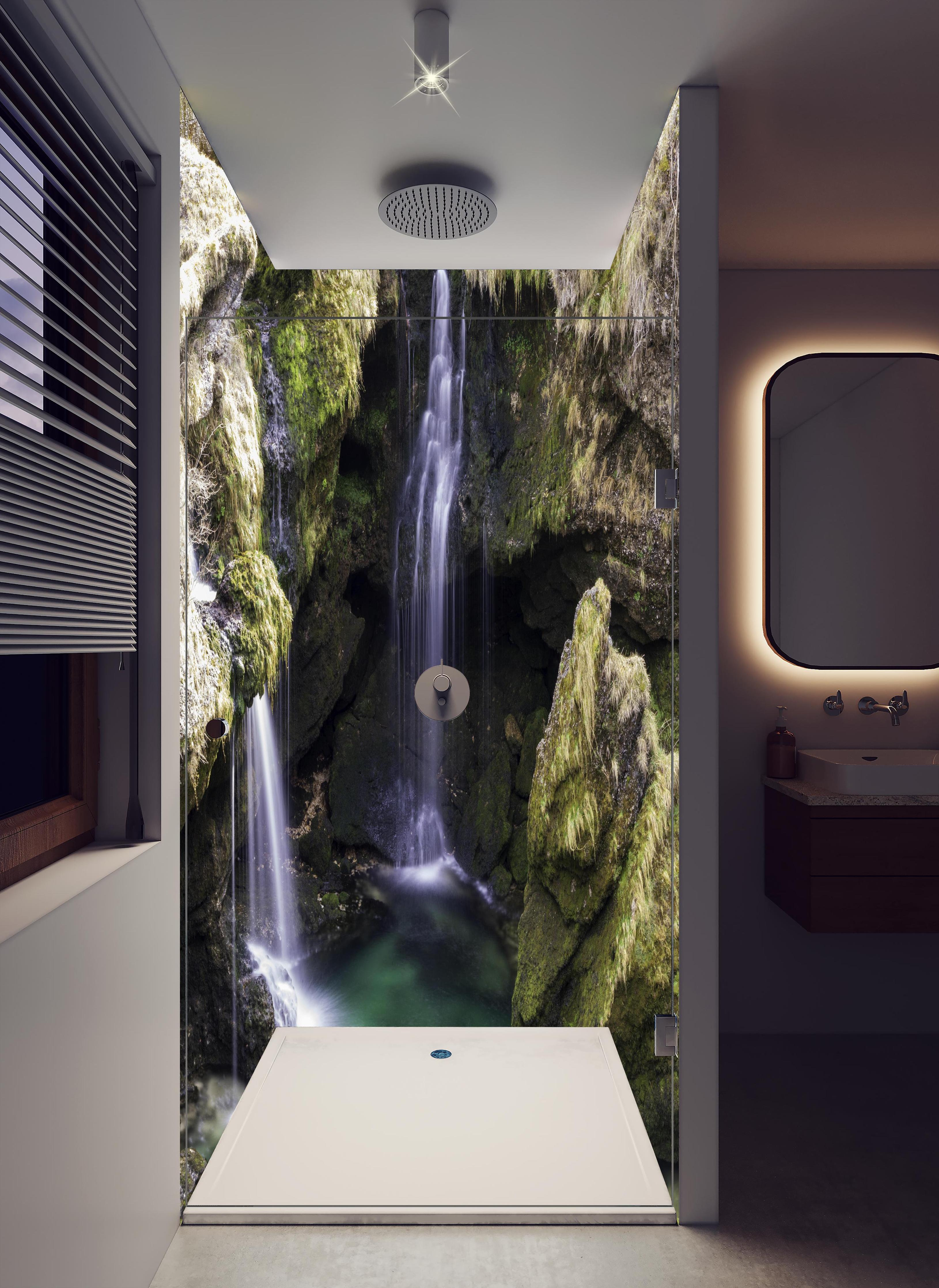 Mit der Duschrückwand ‚ harmonische Traunfall Wasserfälle‘ von Rückwand24 verleihst du Deinem Bad einen einzigartigen und unverkennbaren Look, der perfekt zu Dir passt. Passe das Motiv Duschrückwand ‚ harmonische Traunfall Wasserfälle‘ passgenau für Dein Bad an – einfach Maße eingeben und Motivausschnitt wählen – fertig. Wähle dabei zwischen unterschiedlichen Materialien wie ALU-Dibond, Super Solid Glass oder Acryl. Mit unserer exklusiven Prime Lotus-Shield Beschichtung veredelst Du Deine Duschrückwand zusätzlich.