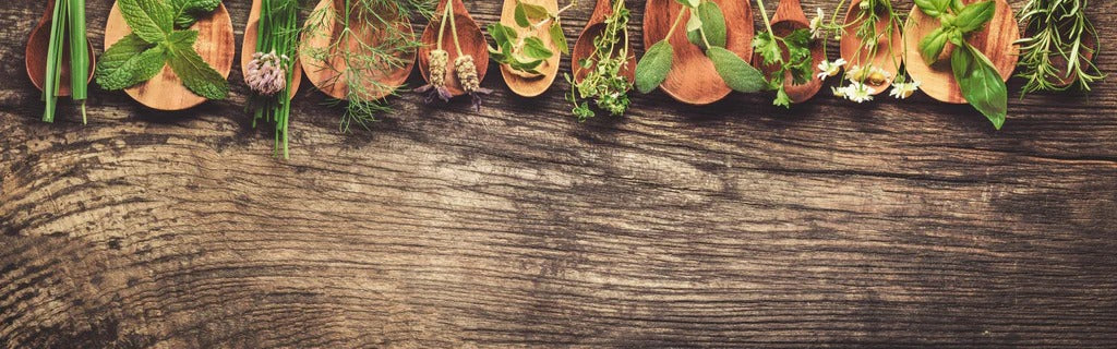 Küchenrückwand - Frische Kräuter auf Holzplatte