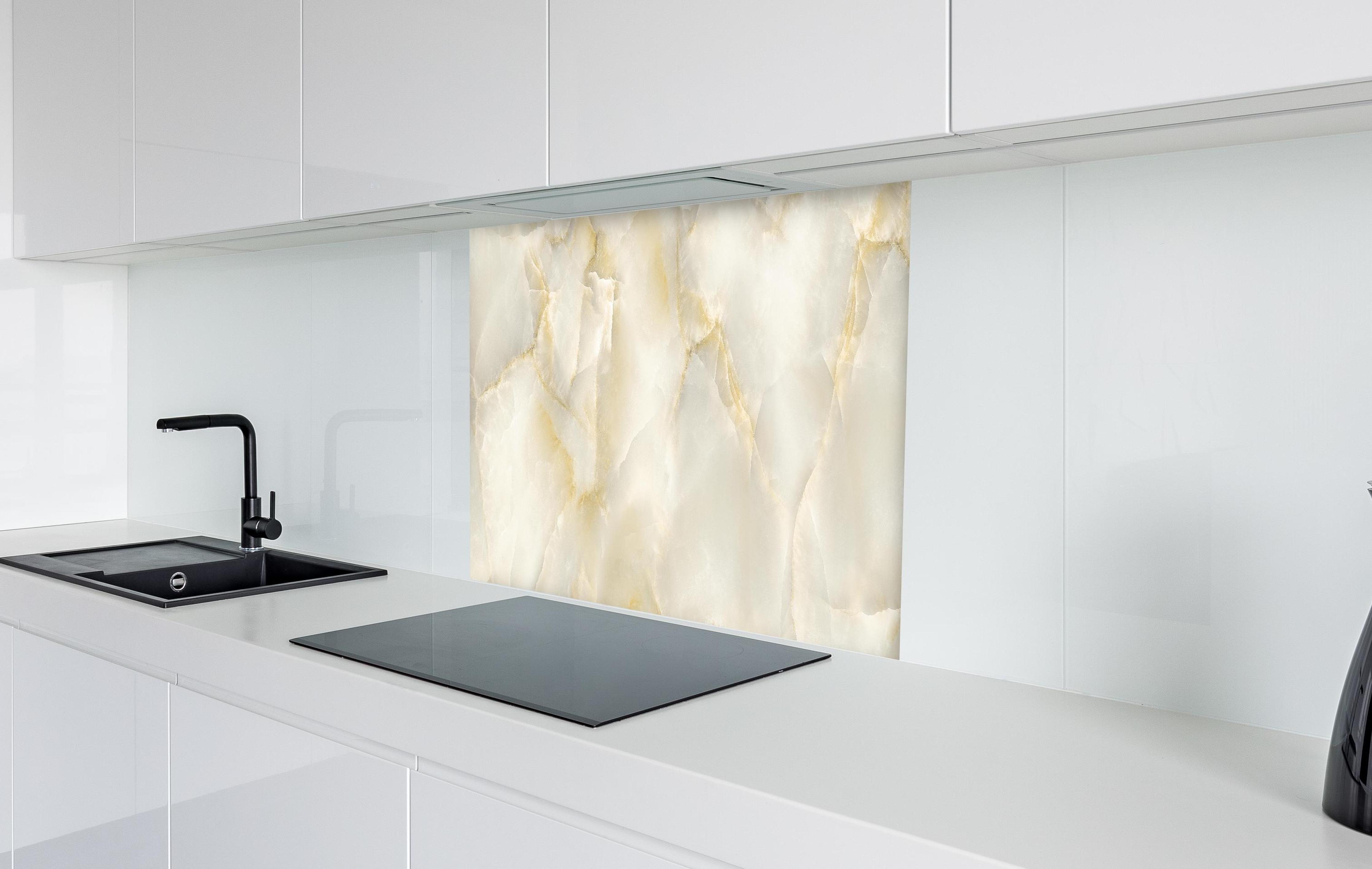 Unübertroffen in allen Materialeigenschaften: Höchste Hitzebeständigkeit auch hinter Gasöfen, stoß- und kratzfester als herkömmliches Glas. Besonders pflegeleicht mit Antifingerprint-Schutz. Matte Optik mit Weichzeichner-Effekt ideal für RAL-Farben und abstrakte Muster.